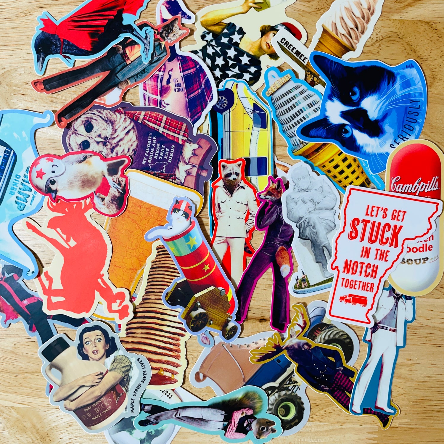 Whether it’s maple syrup saves lives, Bernie in unexpected places, or animals dressed like humans, our stickers keep the laughs coming. Designed in Vermont and printed on durable vinyl, they’re ready for laptops, water bottles, notebooks, or anywhere that needs a little absurdity.