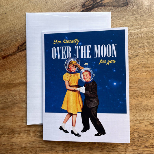 Literally Over the Moon funny love greeting card
