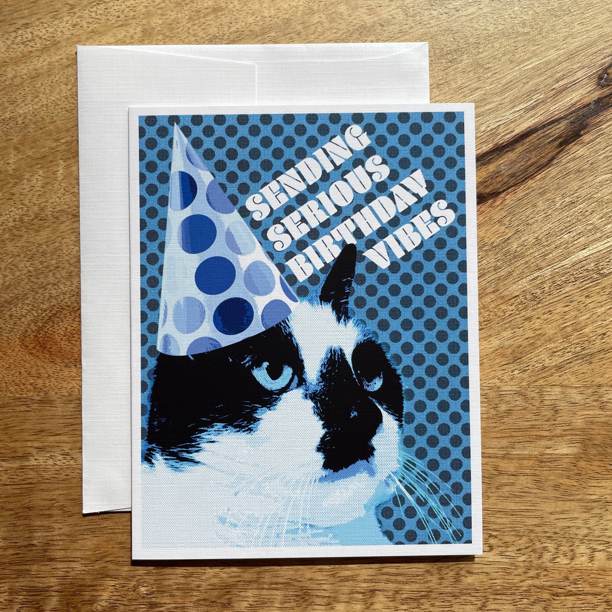 This cat is serious and so are the birthday vibes he sends. Happy birthday, featuring Colossal Sanders' very own studio cat, the venerable Mr. Peabody!