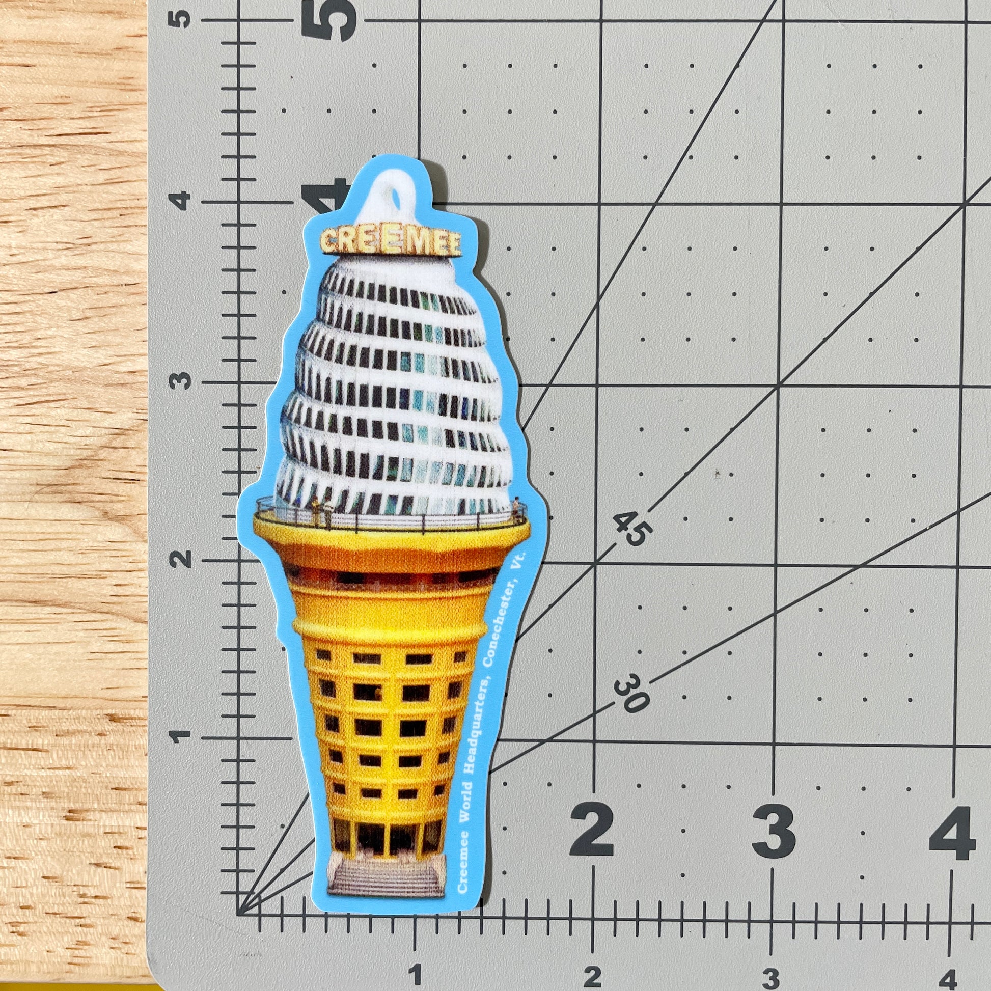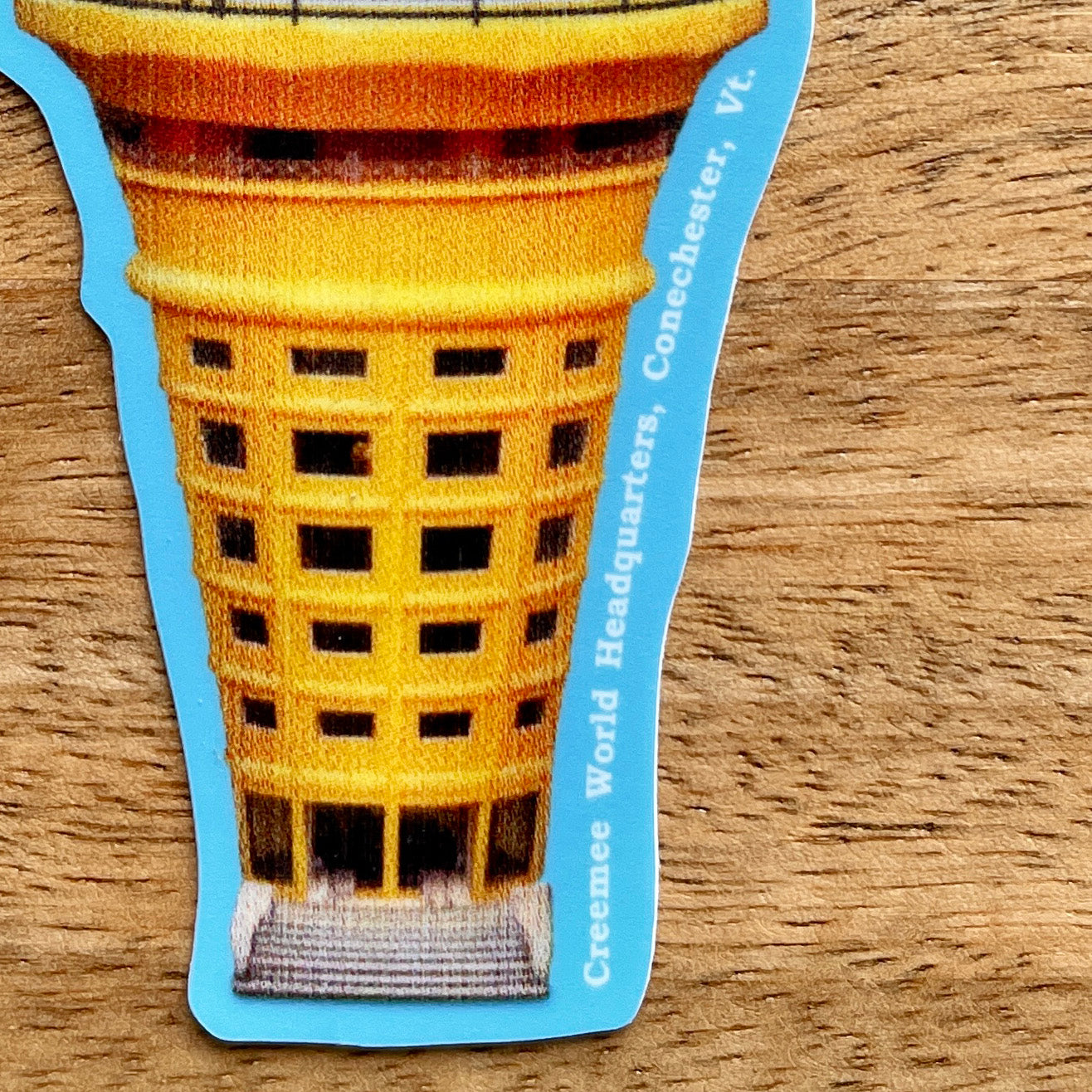 Die-cut 1.75x4.25-inch sticker of the Creemee World Headquarters, located in Conechester, VT. Weatherproof. Stick it anywhere.