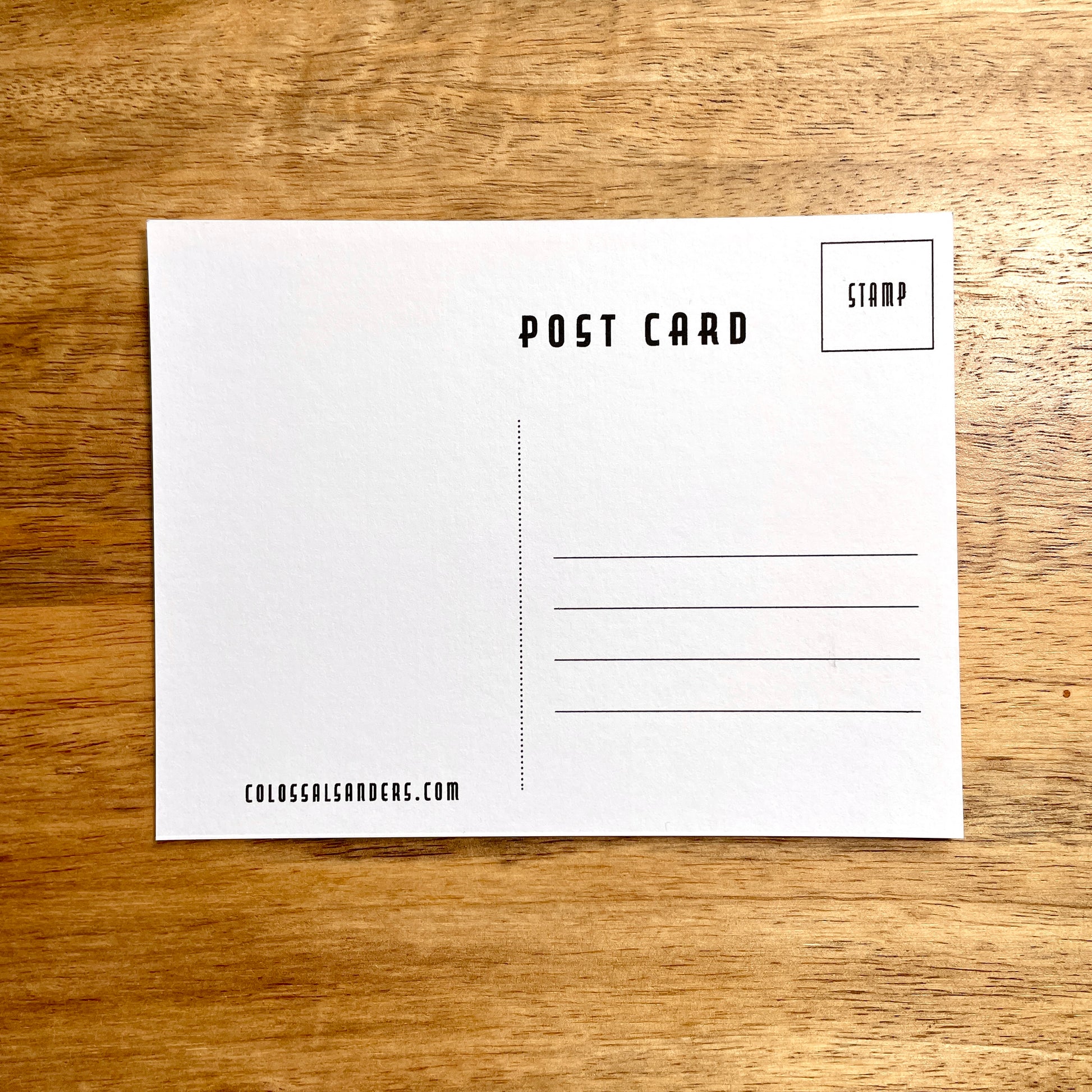 *Note: These are not the glossy, rigid postcards carried normally by Colossal Sanders. But a cool keepsake nonetheless :)