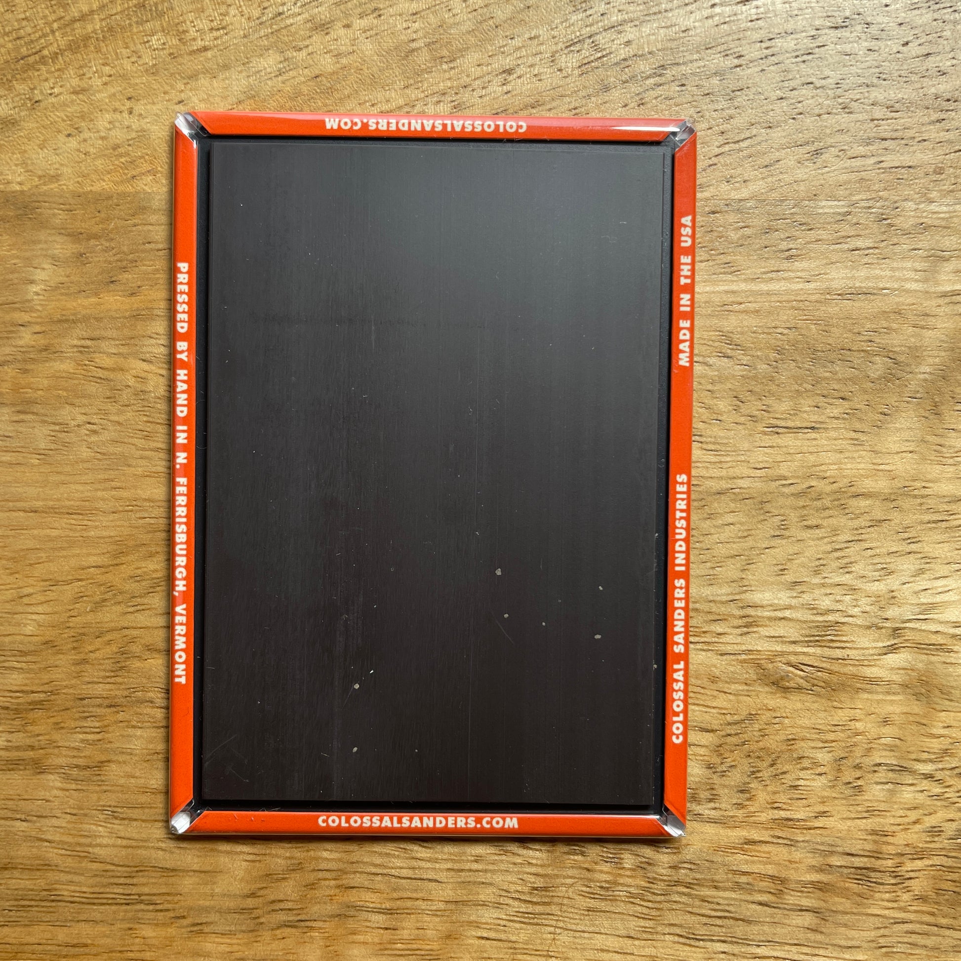 This 2.5"x3.5" magnet is curiously strong and pressed by hand in North Ferrisburgh, Vermont.