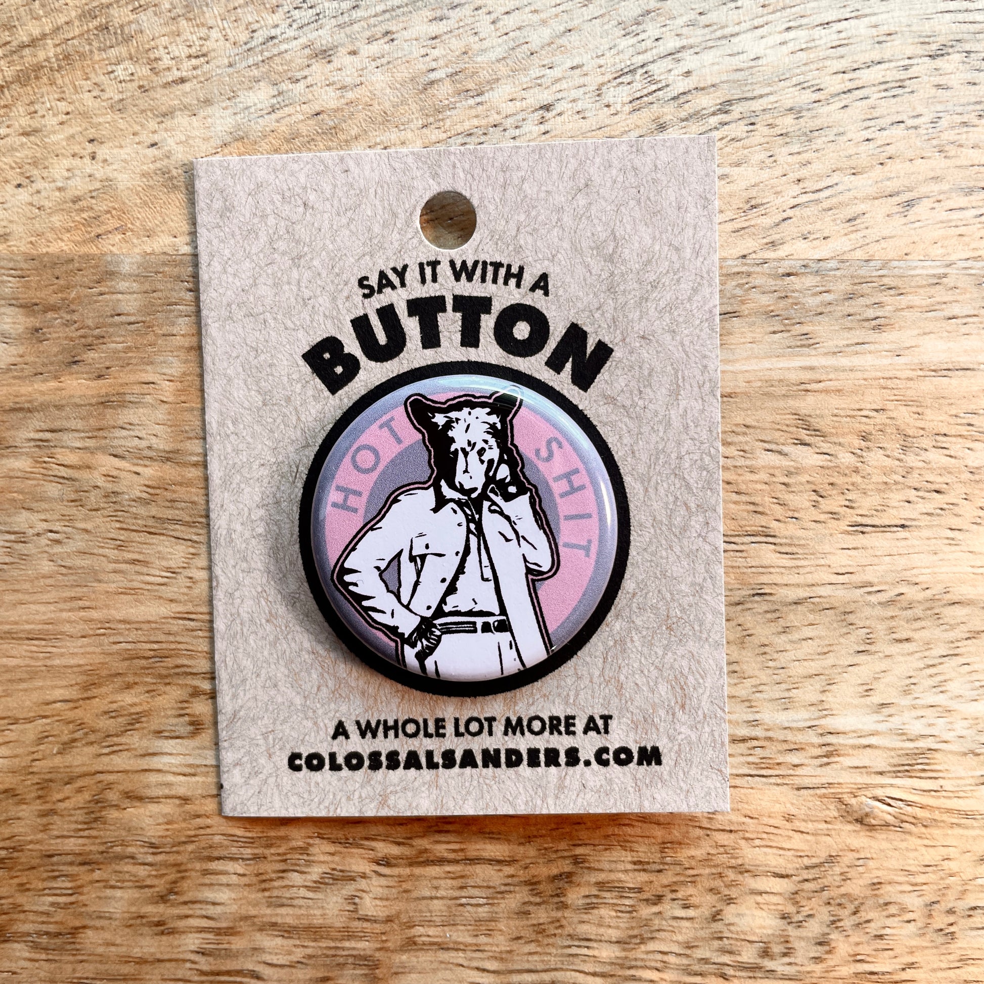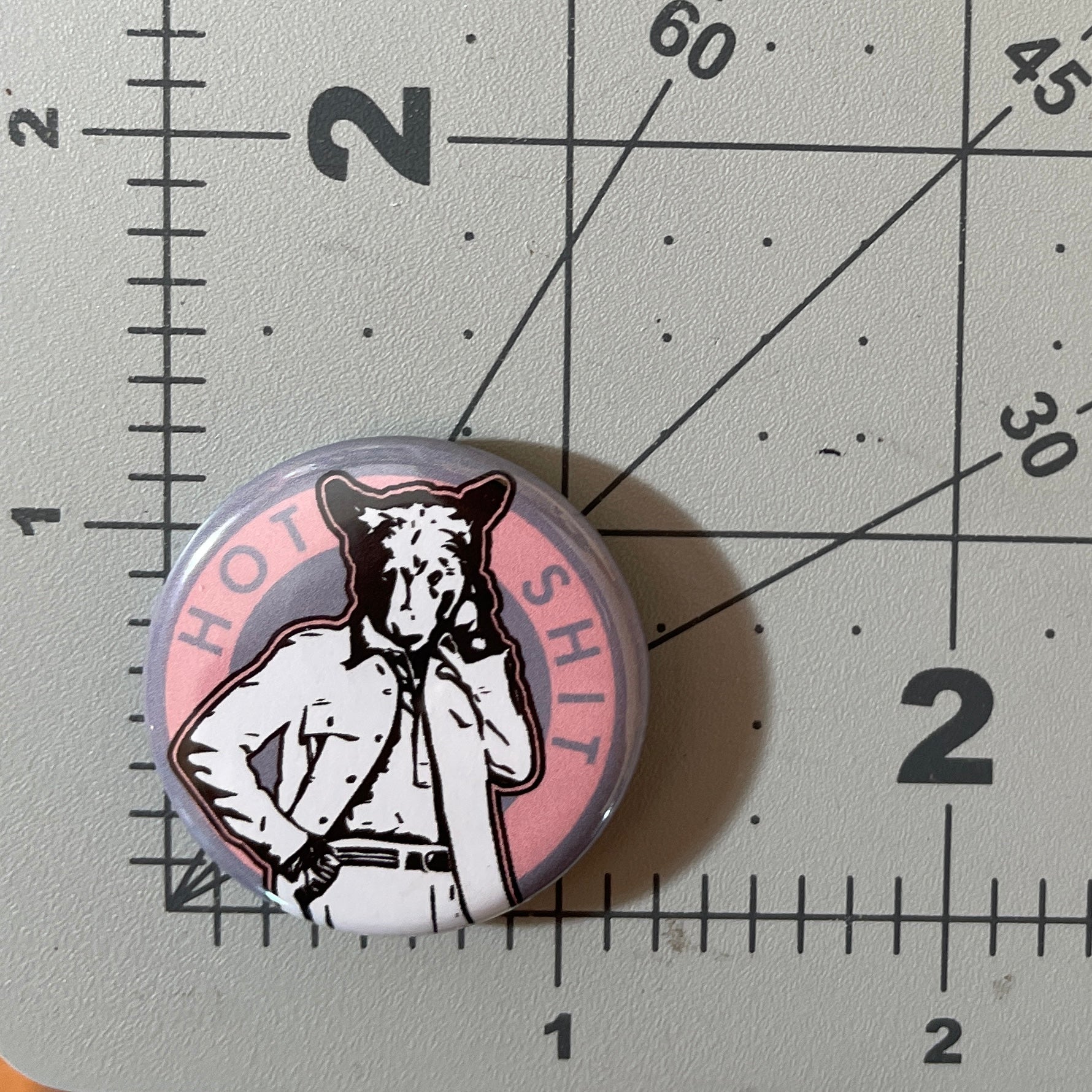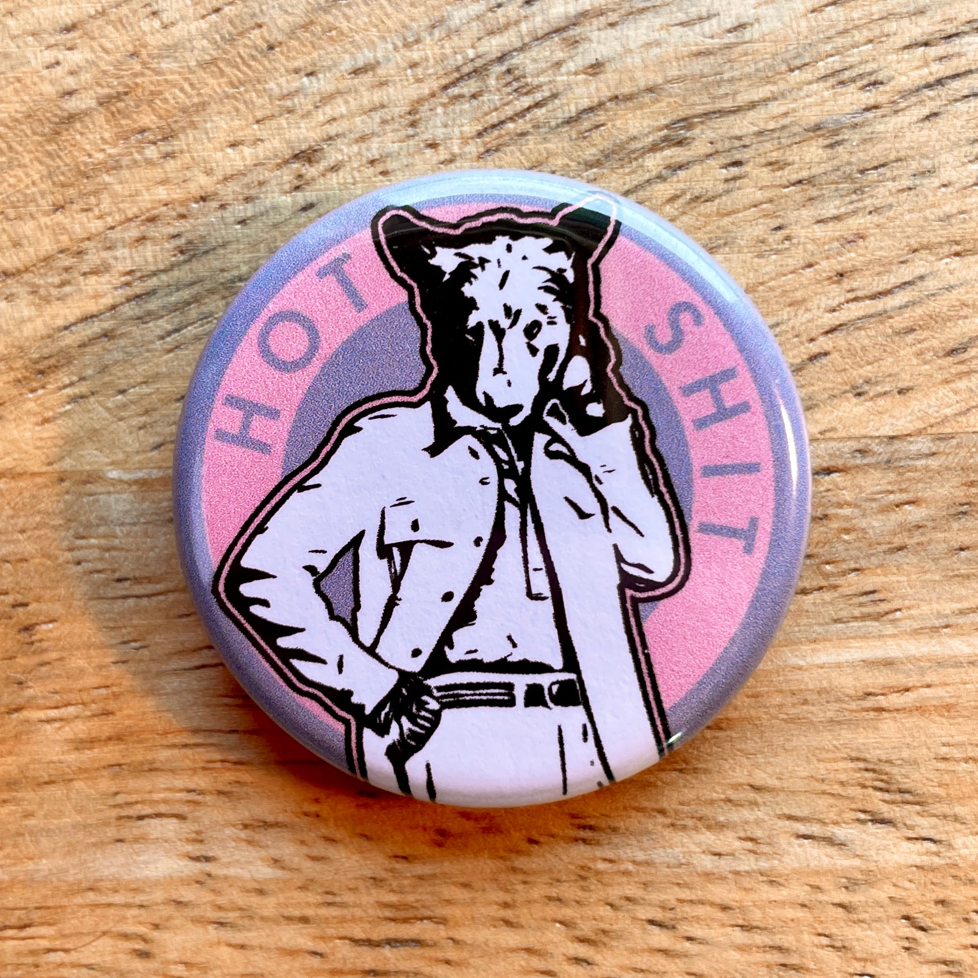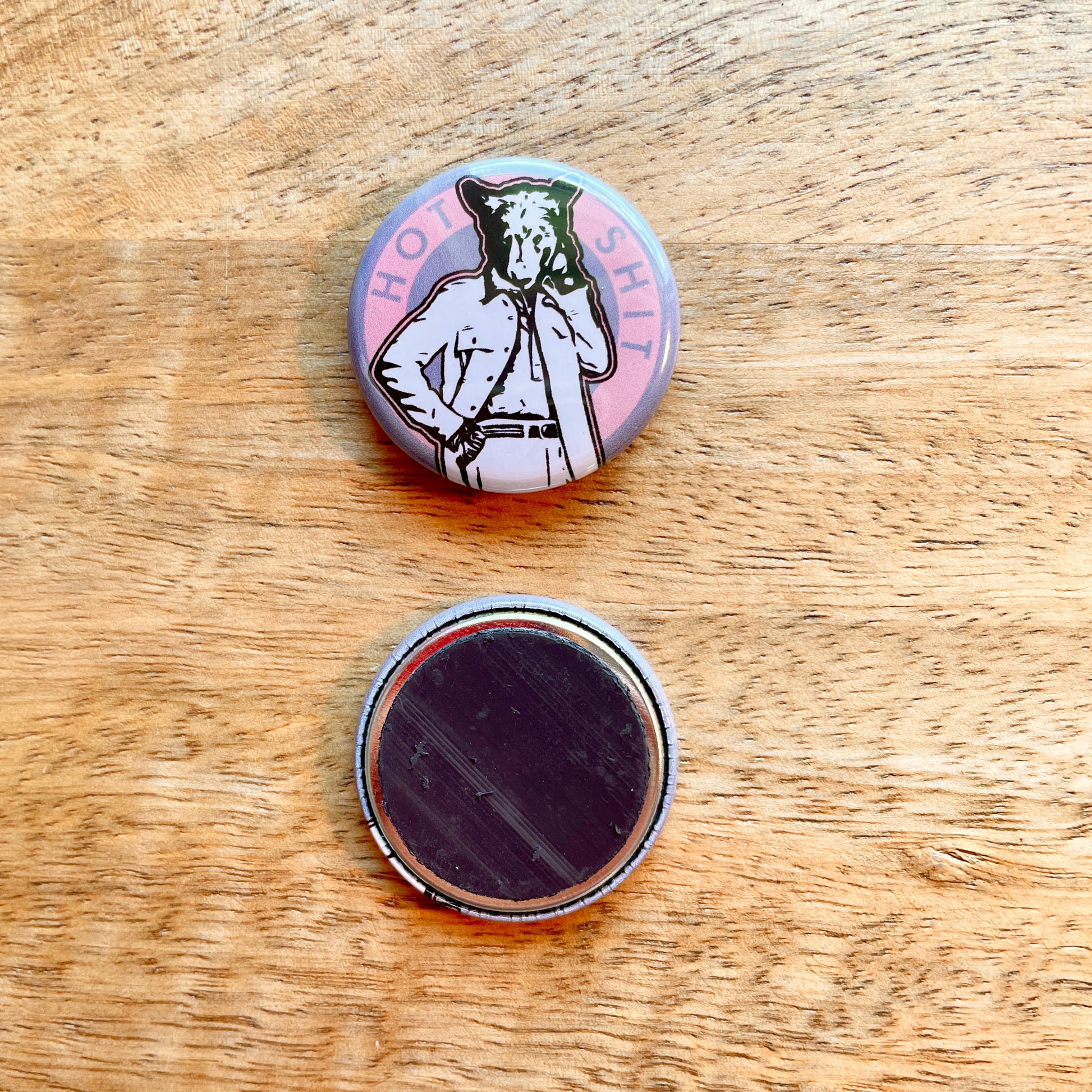 This hot as S bear comes as a 1.25-inch pin-back button or magnet. Buttons are available to be shipped loose or with gift packaging for 50 cents extra. Magnets ship loose.